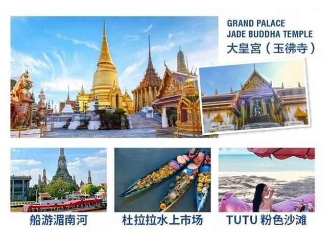 1.【大皇宮 +玉佛寺】早餐后,前往泰國標(biāo)志建筑【大皇宮】,是泰國歷代王宮保存最完美、規(guī)模最大、最有民族特色的王官,被稱為“泰國藝術(shù)大全 ” ,與大皇宮相鄰,是全泰國唯一沒有僧侶住持的佛寺,供奉著一座價(jià)值連城的國寶---玉佛 ,是泰國的三大國寶之一。2.【長尾船游湄南河】乘坐泰國獨(dú)有的長尾船,暢游在湄南河中。既可以欣賞水上人家又可以放松心情,又可以欣賞到曼谷獨(dú)有的湄南河景色、鄭王廟 。河岸兩邊的景色和風(fēng)光一定會(huì)給您帶來不一樣的體驗(yàn)。3. 【廊1919】曼谷新晉潮人打卡低,是由必沙布家族里的高官波山舒巴本先生 1850 年型建的 。那時(shí)是火船運(yùn)輸最 鼎盛的時(shí)期,船只往來川流不息?;鸫瘸俗鳛榇a頭之外,還建有一座媽祖廟,以便出海的船員和附近的居民祭拜。1900 年期間,這里逐漸改為辦公室、住家和倉庫。員工宿舍在樓上,樓下則為辦公室 。在這期間,這里也曾作為中 國商人協(xié)會(huì)的中心,對華人商業(yè)發(fā)展起了積極的推動(dòng)作用。4.【國際人妖秀】 (游覽時(shí)間不少于 60 分鐘) ,欣賞佳麗名媛們傾情奉獻(xiàn)給大家 的精湛演繹,陶醉于紅袖飄舞、婀娜 多姿、千嬌百媚的藝術(shù)神韻而會(huì)感嘆她們的百變神奇。溫馨提示 : 參觀大皇宮玉佛寺時(shí)男士須穿長褲,女士需穿過膝長裙,女士不可穿露背、吊帶上衣及超短裙。