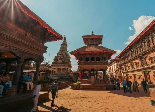 早餐后前往帕坦杜巴廣場,廣場呈長方形,東邊是皇宮,塔萊珠女神廟、金廟、曼嘉噴水池等,西 邊則是造型各異的廟宇,其中最為著名的是黑天神廟、黑天寺、哈里??ㄉ駨R、毗濕奴神廟、 毗斯瓦納特神廟等。其建筑藝術(shù)也非常高超、精湛,在世界建筑史上占有一席之地,被稱為 "露天的博物館"。游覽始建于 2000 多年前的世界上最輝煌的佛教寺廟“斯旺那布廟”(Swayambhunath 世界文化遺產(chǎn),俗稱“猴山”) 【約 1.5 小時】,來這里祭祀 的有尼佤爾尼姑、藏族喇嘛、佛教及印度教之貴族朝圣者,也許斯旺那布塔是觀察尼泊爾各個宗教融洽相 處的最佳地方。整體建筑古樸,味道十分濃郁,民房的窗飾極其繁復(fù),寺廟建筑的細(xì)部一樣精細(xì)。寺廟、 佛塔、銅飾等組合在一起,再加上成群的鴿子飛來飛去,成群的猴子蹦來蹦去,形成獨(dú)特的景觀。游覽始建于 13、14 世紀(jì)的巴德崗杜巴廣場(Bhaktapur Durbar Square 世界文化遺產(chǎn))【約 2 小時】:55 窗宮(The Palace of 55 windows)、 巴特薩拉女神廟(Batsala Devi)、尼亞塔波拉塔(Nyatapola Temple)等。這里可以選購著名的巴德崗木雕工藝品和陶制品。十五世紀(jì)以后,巴德崗杜巴廣場是巴德崗的城市核心,這里有長達(dá)500 年馬拉王朝的王宮,包括許多各具藝術(shù)特色的宮殿、庭院、寺廟、雕像等,被譽(yù)為“中世紀(jì)尼泊爾藝術(shù)的精華和寶庫”,素有“露天博物院”之稱,展現(xiàn)出一幅中世紀(jì)尼泊爾的瑰麗圖畫。后前往加都以東 30 公里的美麗的尼瓦爾人村莊納加闊特(海拔:2000 米)。這里以壯美的喜馬拉雅雪山日出、日落而聞名,是著名的喜馬拉雅觀景臺。因?yàn)檫@里是加德 滿都山谷觀賞喜瑪拉雅山脈視角最廣且最佳的地方。在這里觀賞喜瑪拉雅雪山全景,喜馬拉 雅雪山就像一條玉帶橫掛在空中。如果能見度高,還能看到世界第一高峰-珠穆朗瑪峰。這 里正對著喜瑪拉雅山脈的二十多座 6000 米以上、包括珠珠穆朗瑪峰、雅安納普爾納山峰、 岡底斯圣山等世界著名雪峰的連綿山丘。(在此可以看到十座世界最高山峰中的五座)。傍晚在納加闊特度假 村內(nèi)用晚餐,品餐觀景,是有多么的愜意舒適!