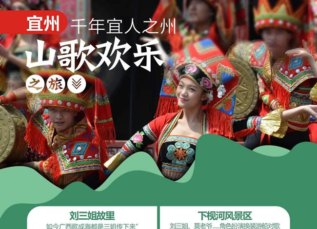后游覽【劉三姐博物館】劉三姐的傳說(shuō)最早見于南宋王象之《輿地紀(jì)勝》卷九十八《三妹山》 。明清以來(lái),有關(guān)她的傳說(shuō)與歌謠文獻(xiàn)記載很多 ,壯族民間口耳相傳的故事與歌謠更為豐富。2006年,宜州市申報(bào)的“劉三姐歌謠”,入選第一批國(guó)家級(jí)非物質(zhì)文化遺產(chǎn)名錄。劉三姐又稱“劉三妹” ,為中國(guó)壯族民間傳說(shuō)中的歌仙。