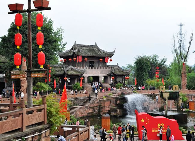 古鎮(zhèn)屬四川省歷史文化古鎮(zhèn)及省級(jí)旅游風(fēng)景區(qū)。古鎮(zhèn)不僅風(fēng)光秀麗、環(huán)境優(yōu)美,還是馳名中外的天然影視攝影基地。古鎮(zhèn)主要特色是:古街、古樹(shù)、古廟、古水陸碼頭、古建筑和古樸的民風(fēng)民俗。是國(guó)家文化部命名的中國(guó)民間藝術(shù)(火龍)之鄉(xiāng)、國(guó)家級(jí)環(huán)境優(yōu)美小城鎮(zhèn)。素有“影視城”、“中國(guó)好萊塢”之稱。