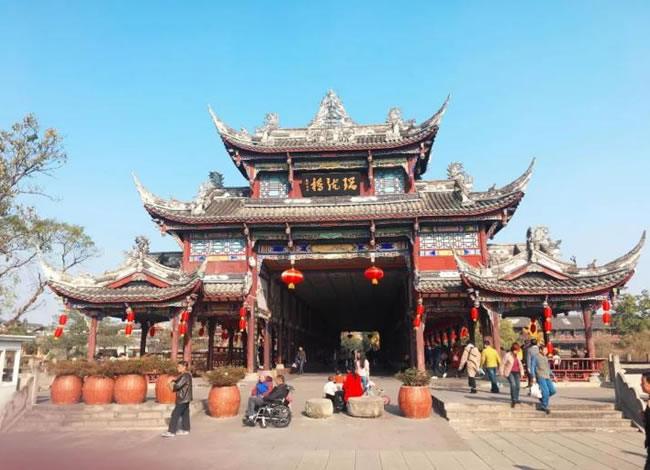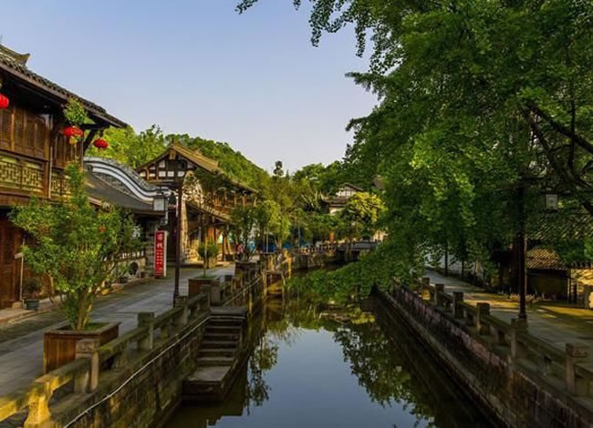 岷江的支流味江流經(jīng)地勢平緩的街子鎮(zhèn)口,形成一泓碧潭——龍?zhí)?。古?zhèn)水系發(fā)達(dá),地下水豐富,石板路兩側(cè)及屋前院后,常年清水不斷,因而有“川西水鄉(xiāng)”之名?!扒喑呛蠡▓@”之稱。景區(qū)屬亞熱帶濕潤氣候,年平均氣溫15.9℃,盛夏氣溫低于成都市區(qū)4—5℃,全年均適宜旅游。