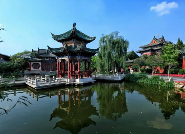中餐后游覽中原園林美化之精品——【天波楊府】(游覽時(shí)間2小時(shí)左右),是為紀(jì)念北宋愛(ài)國(guó)名將楊業(yè)而恢復(fù)的宋代古建筑群,因位于京城西北隅天波門的金水河旁,故名天波楊府。它,體現(xiàn)了時(shí)代的完美情趣,堪稱中原園林美化之精品。置身天波,一步一景,目睹人工巧奪的奇山秀水,耳聞楊家滿門忠烈抗侵略感人涕下的動(dòng)人故事,敬意油然生成。后參觀 “開(kāi)封人的待客廳” 【小宋城】 ,自費(fèi)品嘗河南小吃。整體以木質(zhì)仿古建筑為主,回廊流水,亭臺(tái)樓榭及戲臺(tái)上傳出的傳統(tǒng)戲曲演唱聲,仿佛瞬間把人帶回了質(zhì)樸又輕緩的北宋時(shí)代。抬起頭,房頂噴繪的藍(lán)天白云,加上周圍小吃攤販身上重點(diǎn)推薦:(開(kāi)封灌湯包子、鍋貼、炒涼粉),游覽結(jié)束后入住酒店,入住后還可自由活動(dòng)參觀有千年傳承的鼓樓夜市。